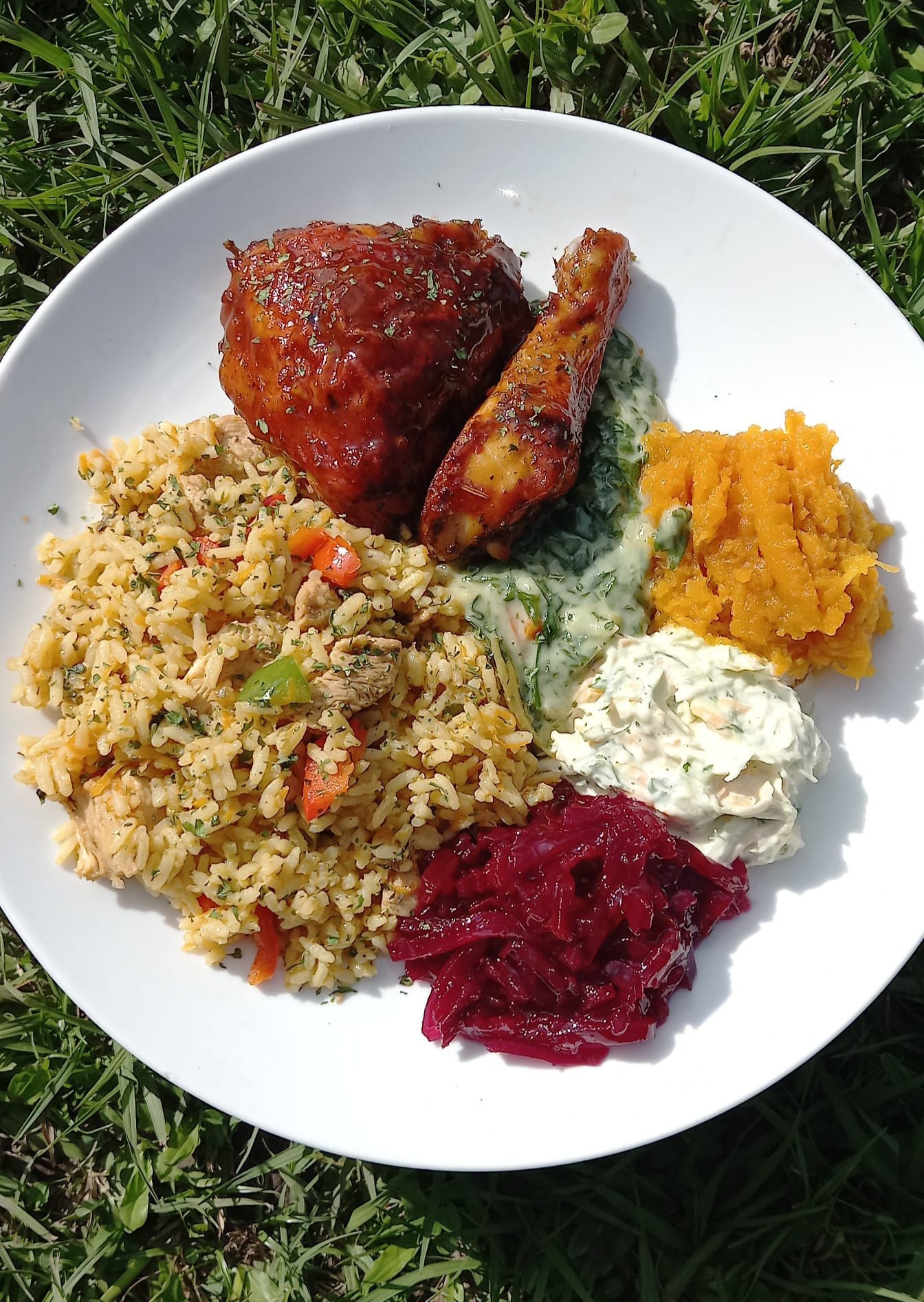 Rice, Chicken with mixed vegetables and butternut