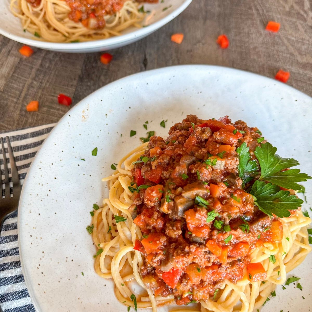 Pasta/Spaghetti, mince with mixed vegetables and coleslaw salad
